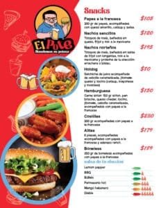 El menú no es solo una lista de platillos y bebidas; es una extensión de la identidad de un establecimiento. En el caso de El Pote Snaks, el menú refleja la personalidad del lugar: desenfadado, divertido y con un toque de tradición mexicana. Desde los clásicos nachos norteños hasta las costillas y las alitas, cada platillo está diseñado para satisfacer los antojos más exigentes. Además, la sección de bebidas, que incluye desde mezcales artesanales hasta cócteles creativos, complementa perfectamente la oferta gastronómica.