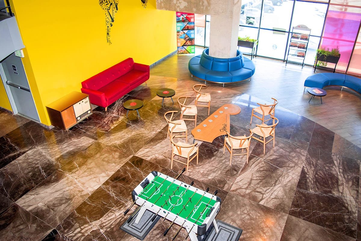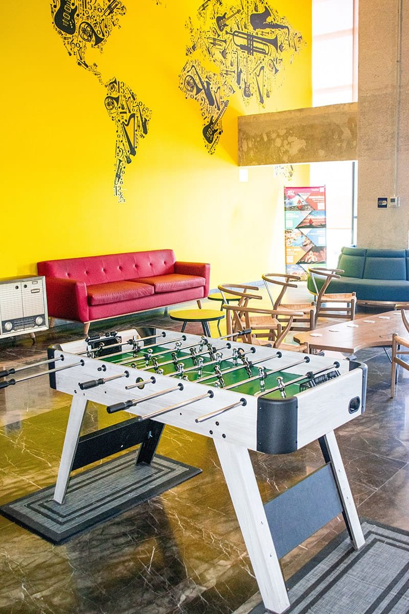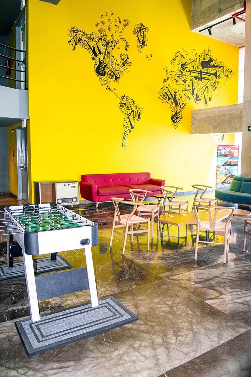 Nuestro trabajo consistió en capturar la esencia de estos espacios, resaltando los detalles arquitectónicos, el juego de luces, las texturas y, por supuesto, la ambientación musical que lo hace tan especial. Cada fotografía fue cuidadosamente planeada para transmitir no solo la belleza de las habitaciones y áreas comunes, sino también el espíritu joven, dinámico y cultural que representa el hotel.